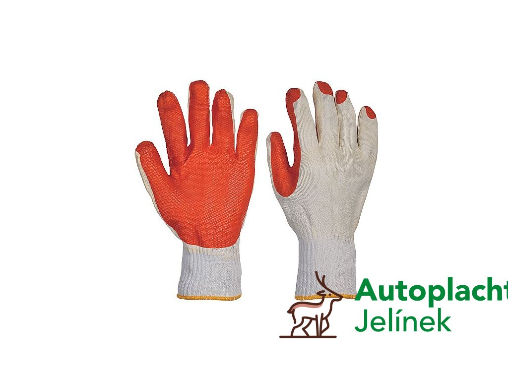 • pletené rukavice ze silné směsné příze polyester/bavlna • napuštěné latexem • s další silnou vrstvou latexu v dlani a na prstech • pružný náplet