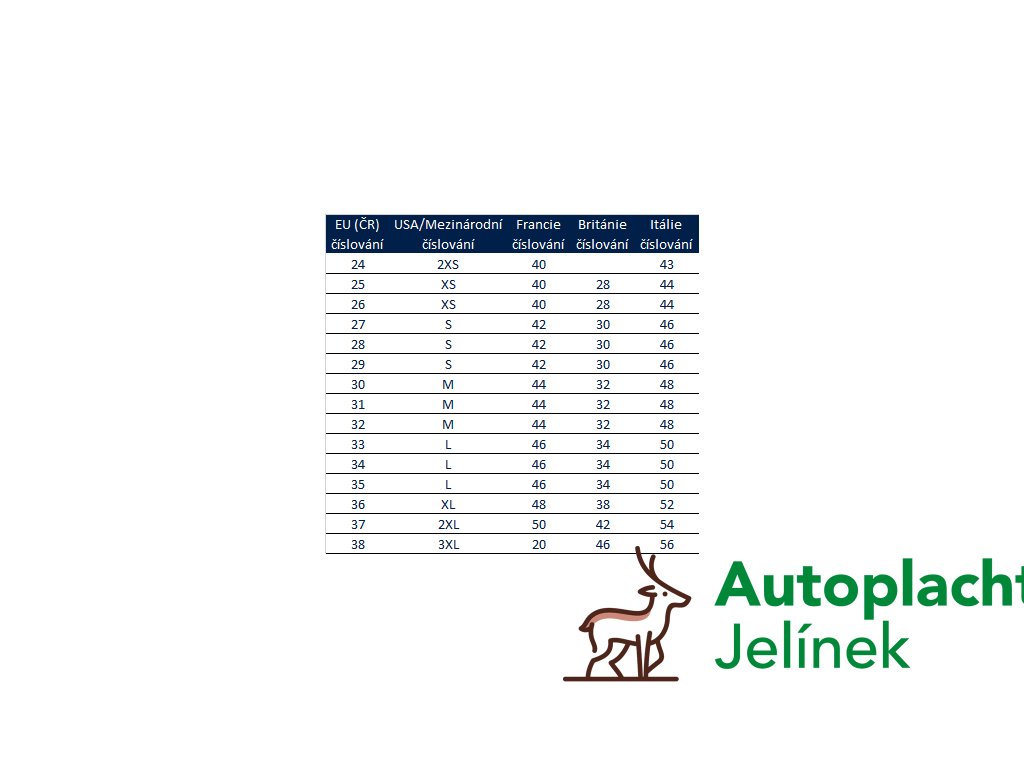 Dostupné velikosti: 50, 54, 56, 58, 60 a EU číslování: 24, 25, 26, 27, 28, 29, 30, 31 - tuto velikost prosím uvádějte do poznámky v objednávce.