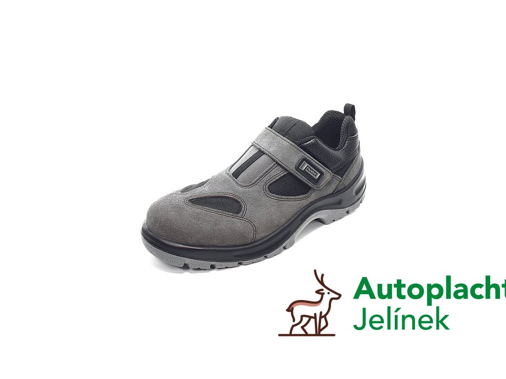 Bezpečnostní sandál s kompozitní tužinkou. PU/PU podrážka rezistentní olejům, absorpcí energie v patě, vysoká odolnost vůči uklouznutí. Svršek z broušené kůže.