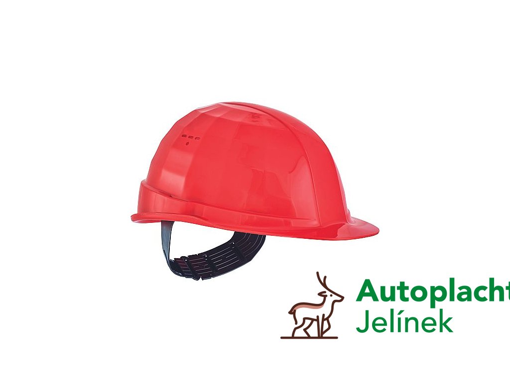 ventilovaná průmyslová přilba; 4 bodový textilní náhlavní kříž; nastavení velikosti pomocí posuvného pásku; materiál polyethylen; hmotnost 310 g
